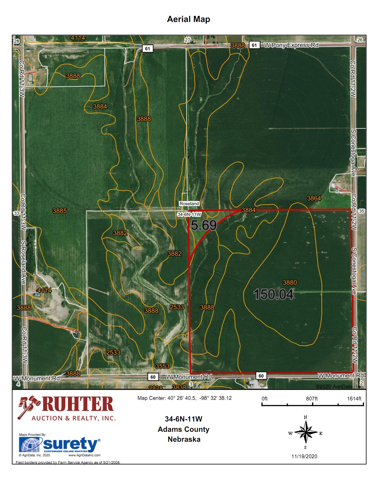 Legal Description: Southeast Quarter (SE ¼) in Section Thirty-four (34), Township Six North (T6N), Range Eleven West (R11W) of the 6th P.M. Adams County, Nebraska 160 acres more or less.