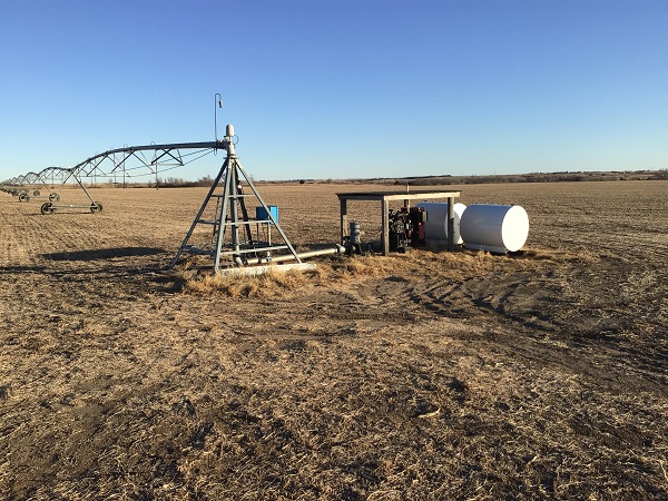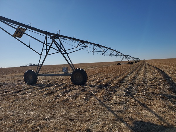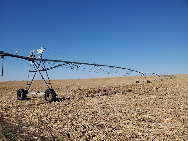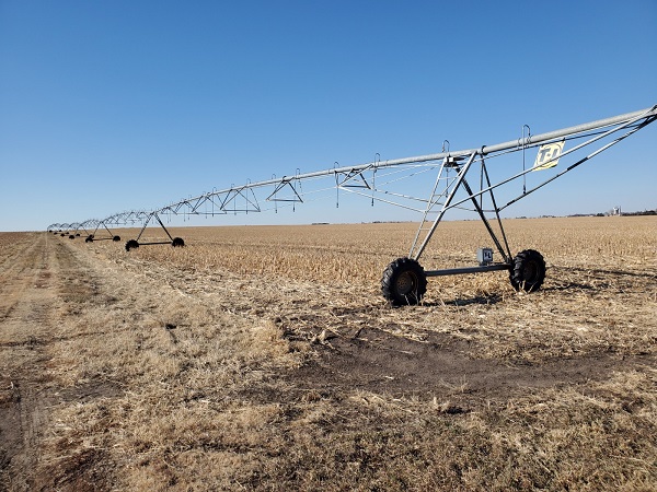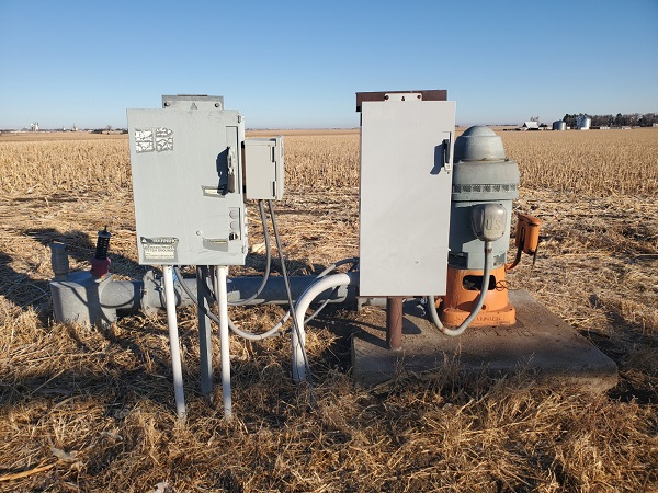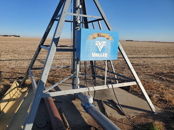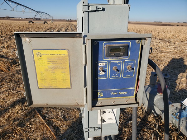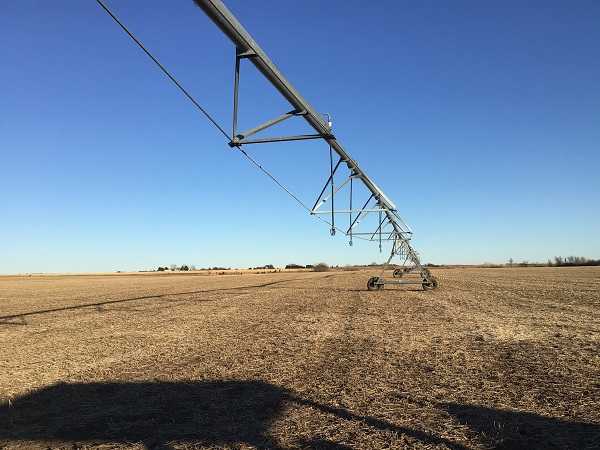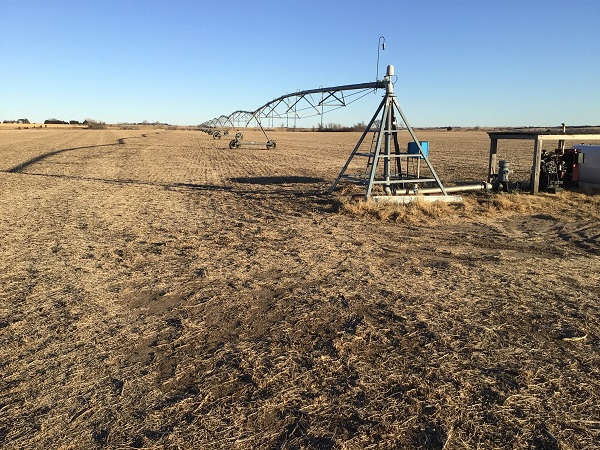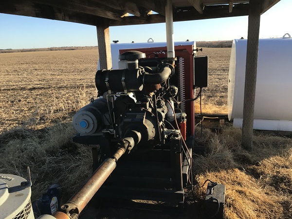 Equipment: 2004 Valley 9 tower center pivot, drop nozzles set at about 800 gpm (Ag Sense is property of the tenant and not included)/ 2012 FPT 4 cylinder 99 hp diesel engine w/ only 733 hours/ 2- 1,000 gallon fuel tanks/ Randolph 100 hp gearhead 6:5 ratio on well drilled in 1982/ flow meter/ well and gearhead in northeast corner drilled in 1966. (The 4 tower pivot in the northeast corner is owned by another party and not included in this transaction)