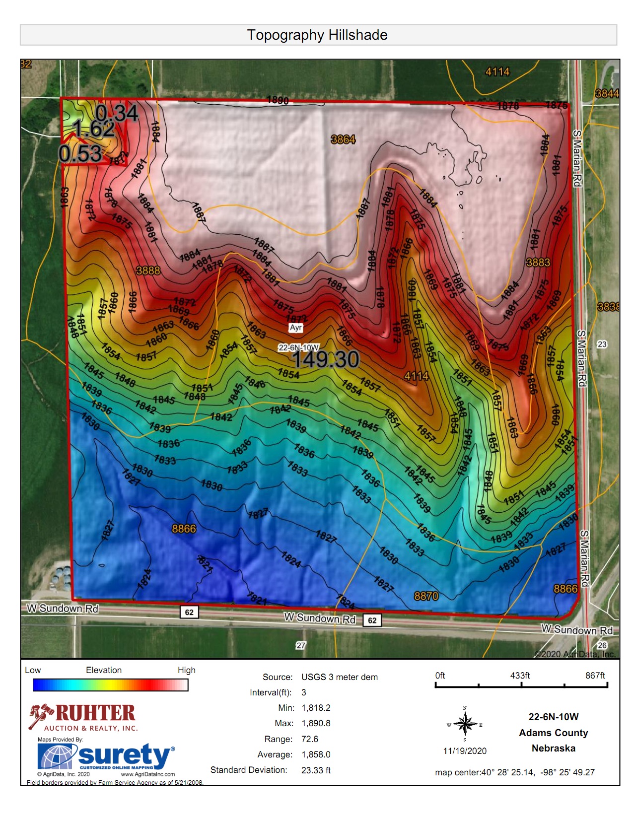 Description: This is an excellent pivot irrigated farm with level to rolling terrain and very productive soils including Hastings and Holder silt loam.