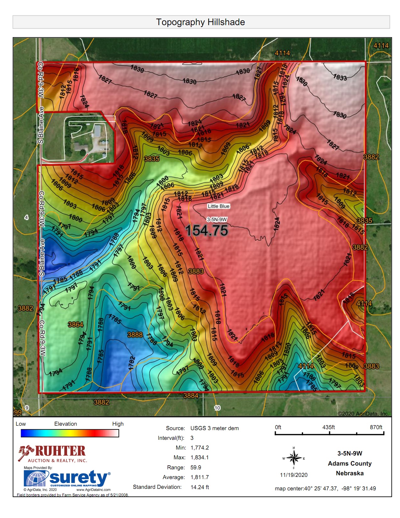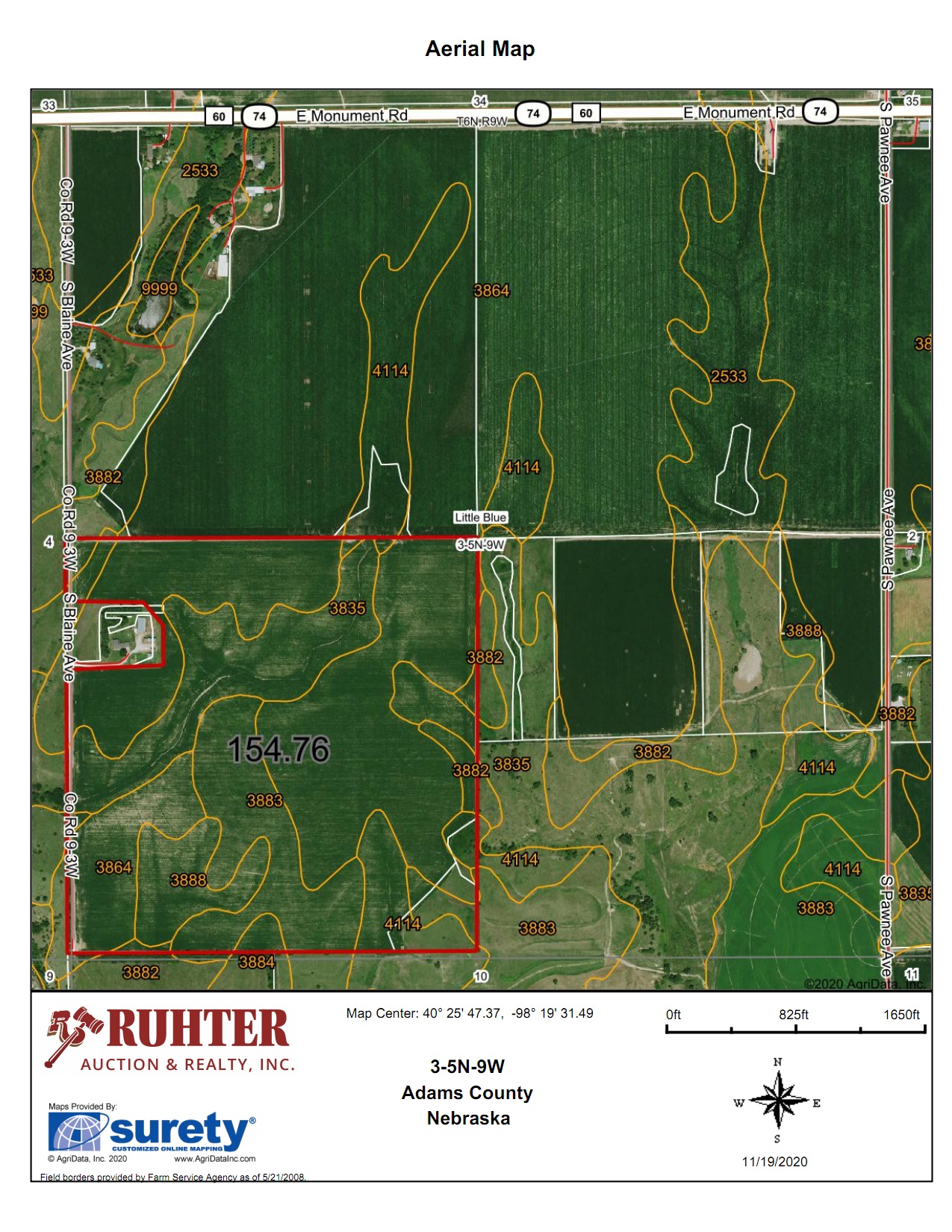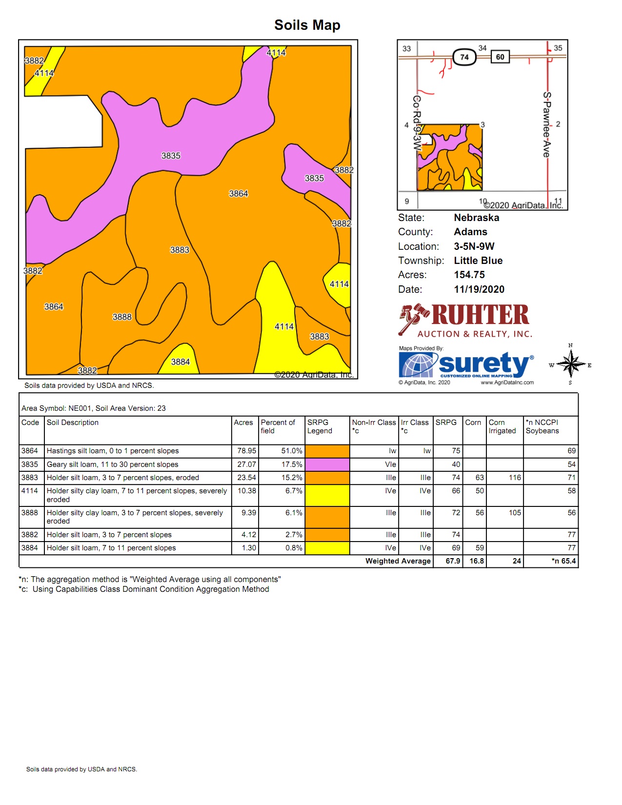 Legal Description: Southwest Quarter (SW ¼) Except Krull Subdivision in Section Three (3), Township Five North (T5N), Range Nine West (R9W) of the 6th P.M. Adams County, Nebraska 154.76 acres more or less.