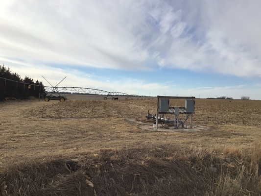 T-L 6 tower center pivot in southeast corner of farm w/ electric wheel service