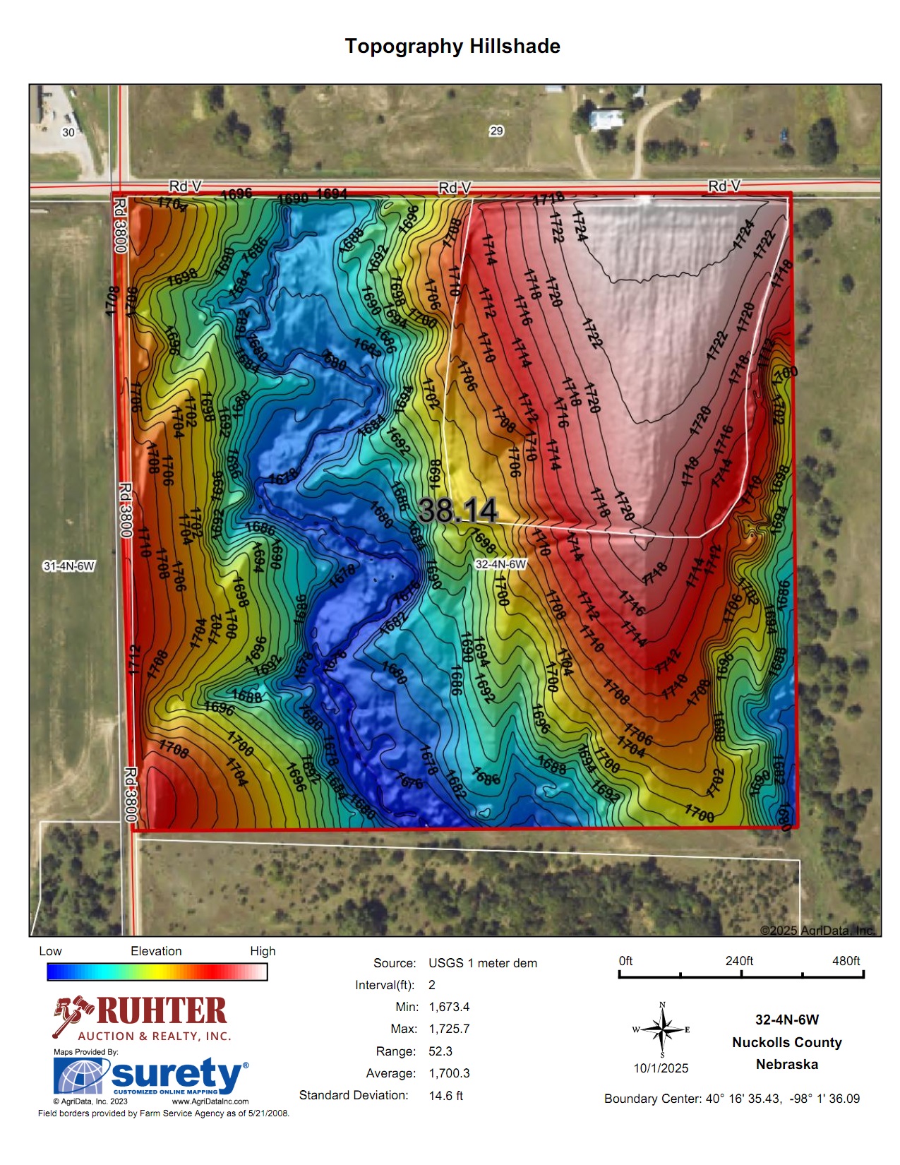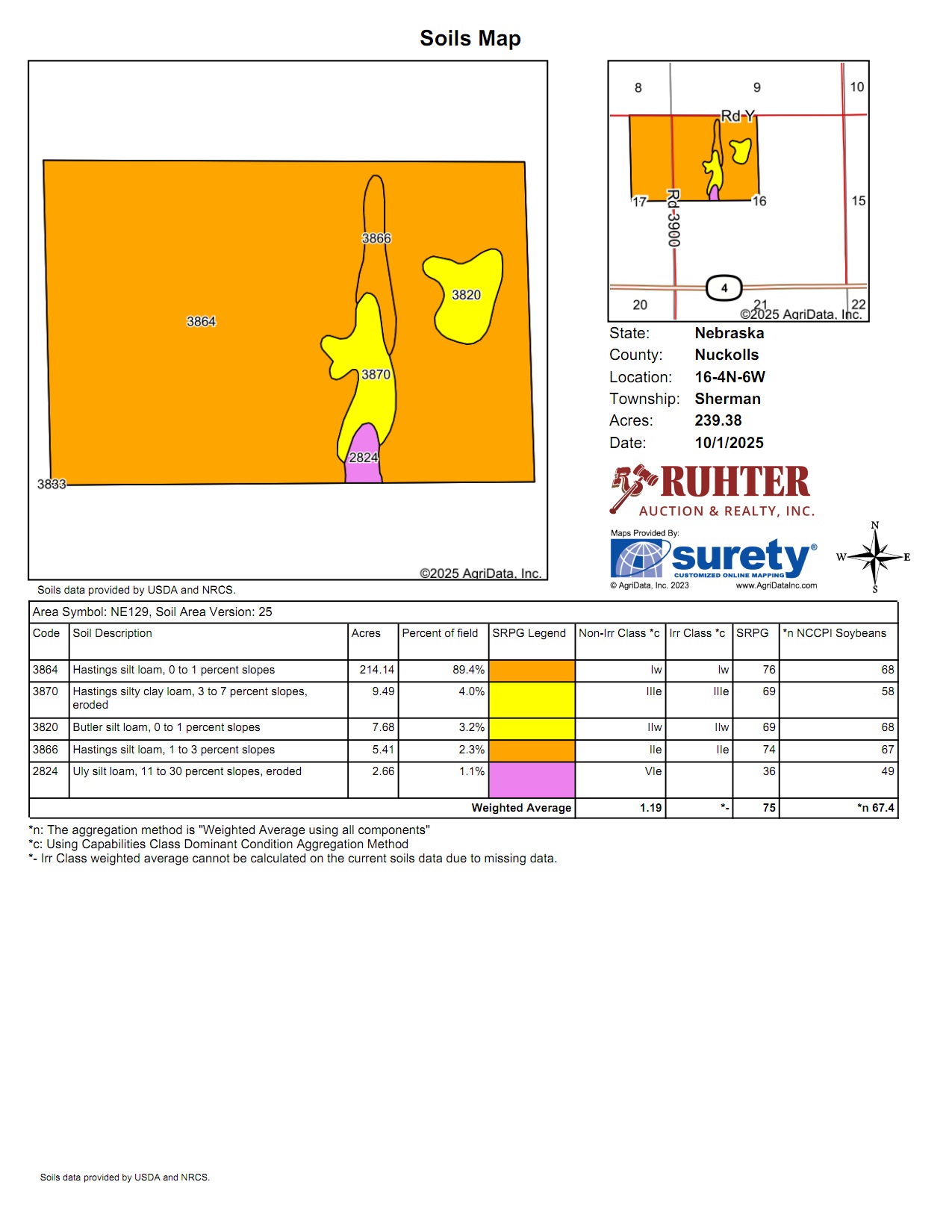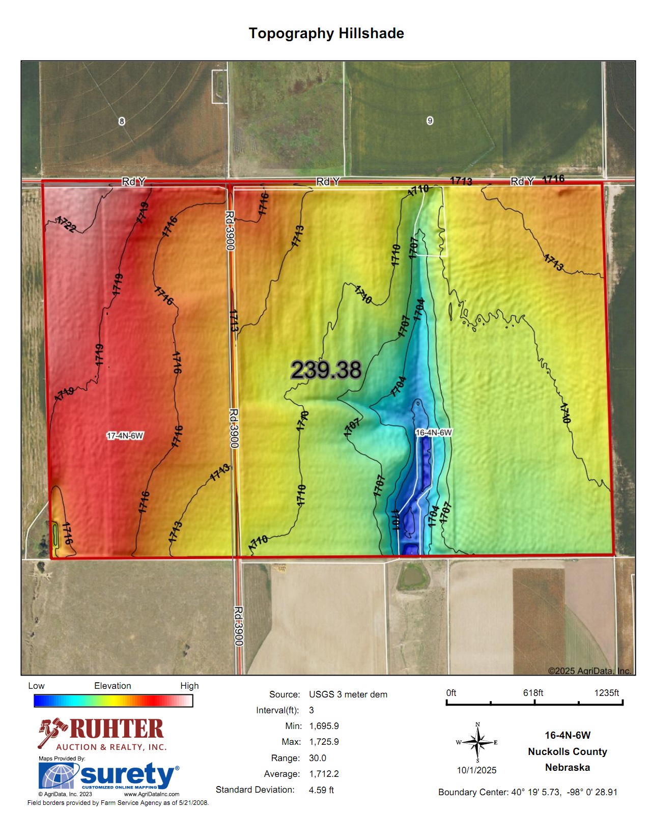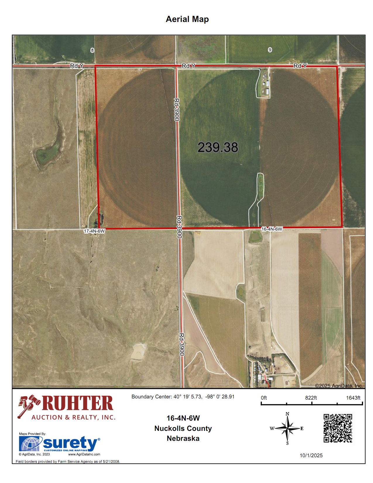 LEGAL DESCRIPTION: Northwest Quarter of Section Sixteen (16), Township Four North (T4N), Range Six West (R6W) of the 6th PM, Nuckolls County, NE. 160 acres +/- & East Half of the Northeast Quarter of Section Seventeen (17), Township Four North (T4N), Range Six West (R6W) of the 6th PM, Nuckolls County, NE. 80 acres +/-, 240 total acres +/-