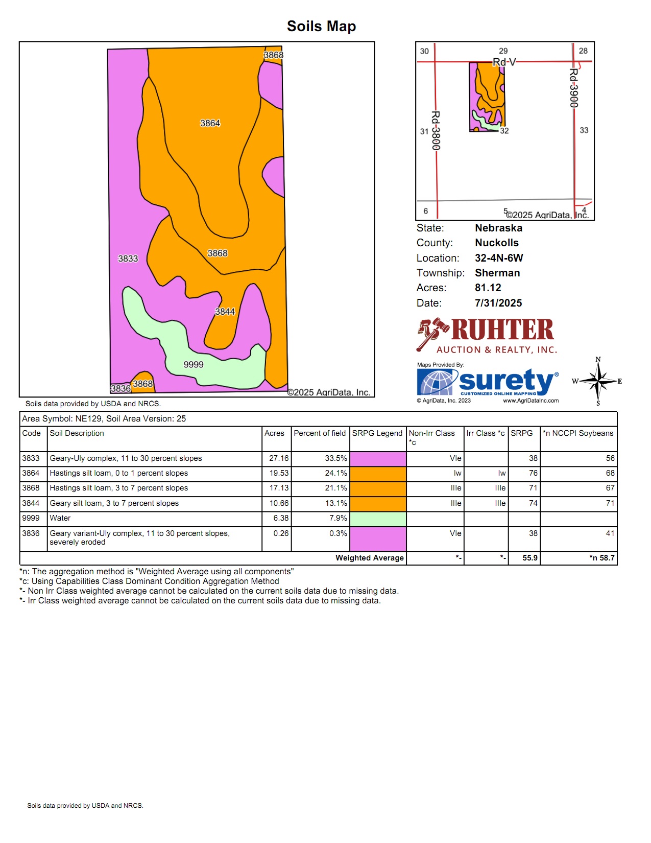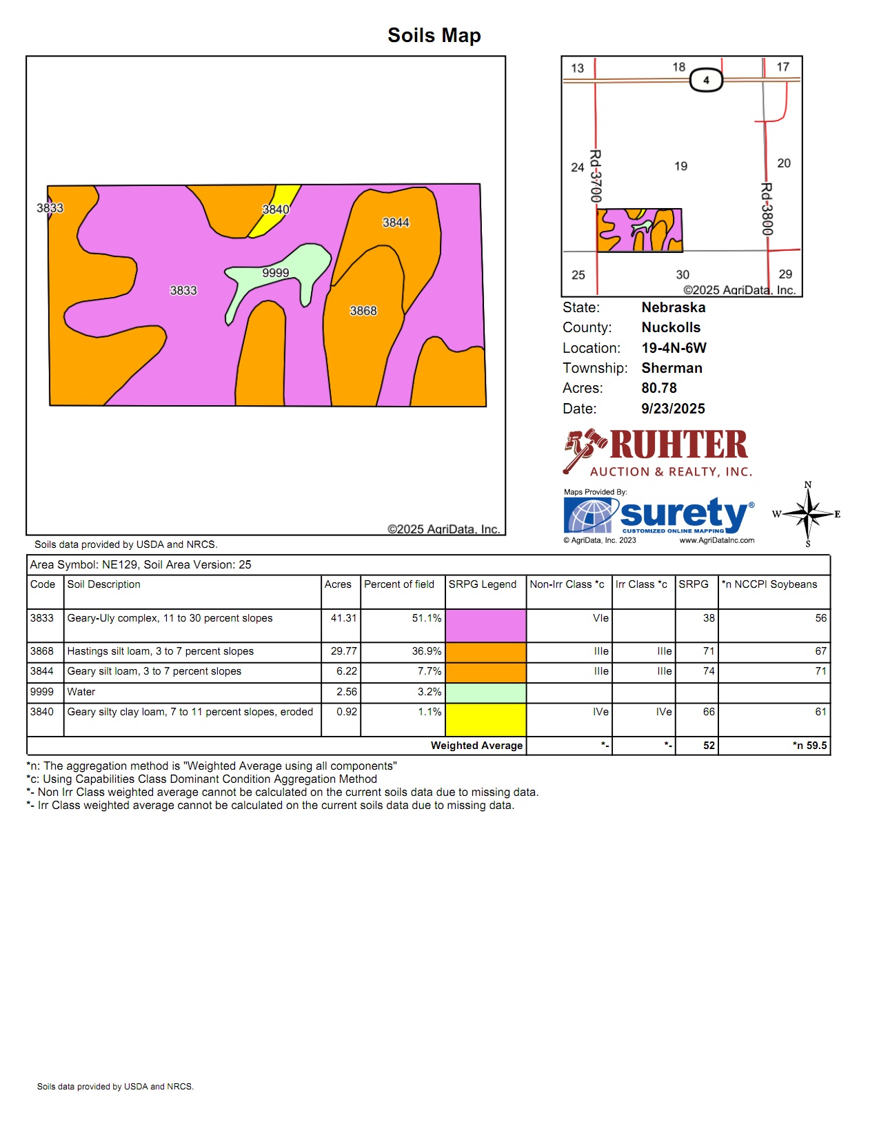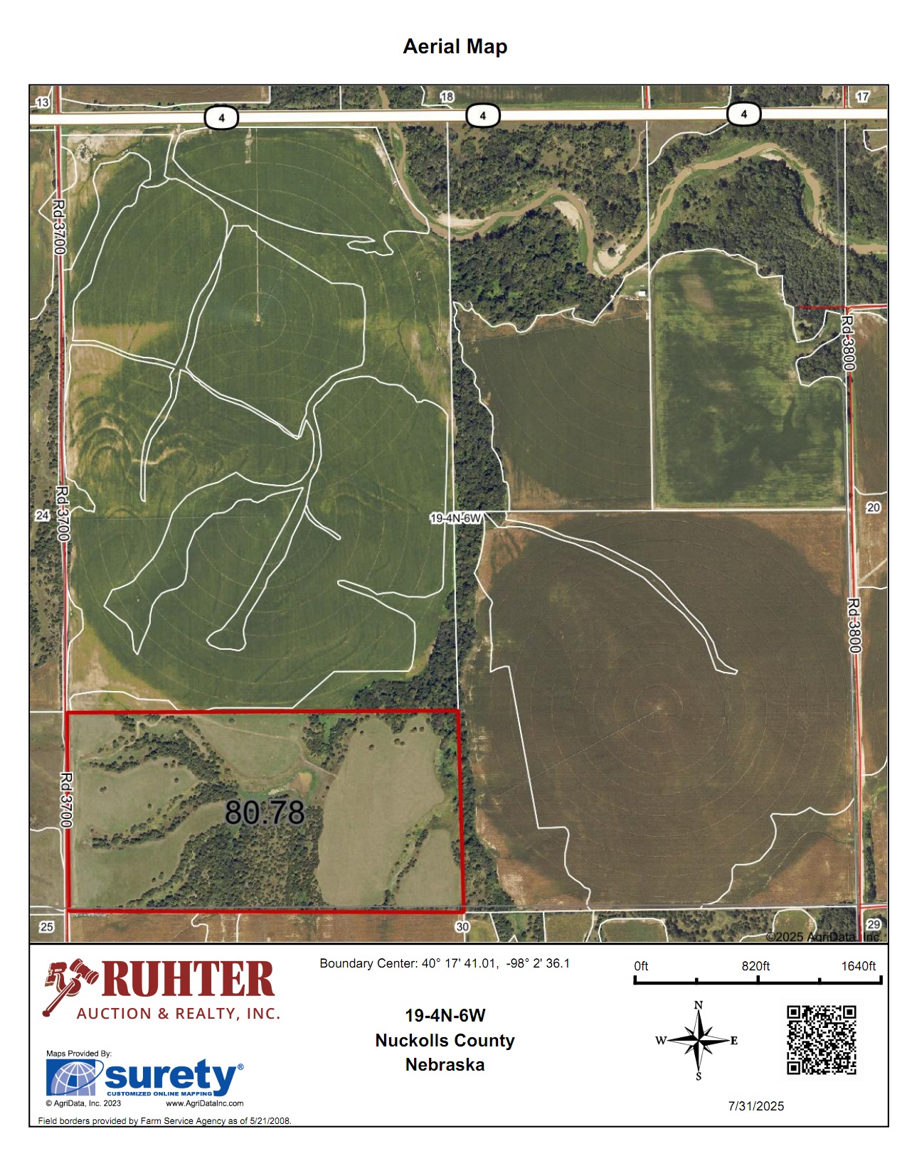 LEGAL DESCRIPTION: South Half of the Southwest Quarter of Section Nineteen (19), Township Four North (T4N), Range Six West (R6W) of the 6th PM, Nuckolls County, NE 80 acres +/-