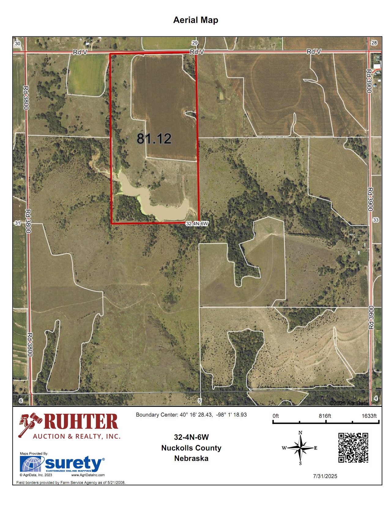 LEGAL DESCRIPTION: East Half of the Northwest Quarter of Section Thirty-Two (32), Township Four North (T4N), Range Six West (R6W) of the 6th PM, Nuckolls County, NE, 80 acres +/-