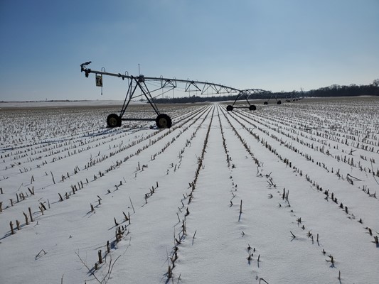 Equipment: T-L 10 tower center pivot, Izuzu power unit, 3 phase 15 hp electric motor for wheel service at pivot point, and 1,000-gallon fuel tank.