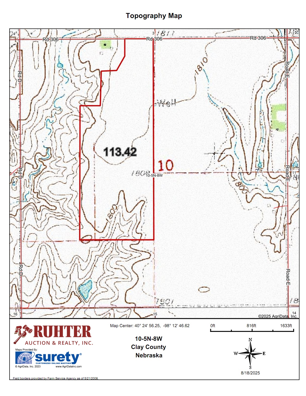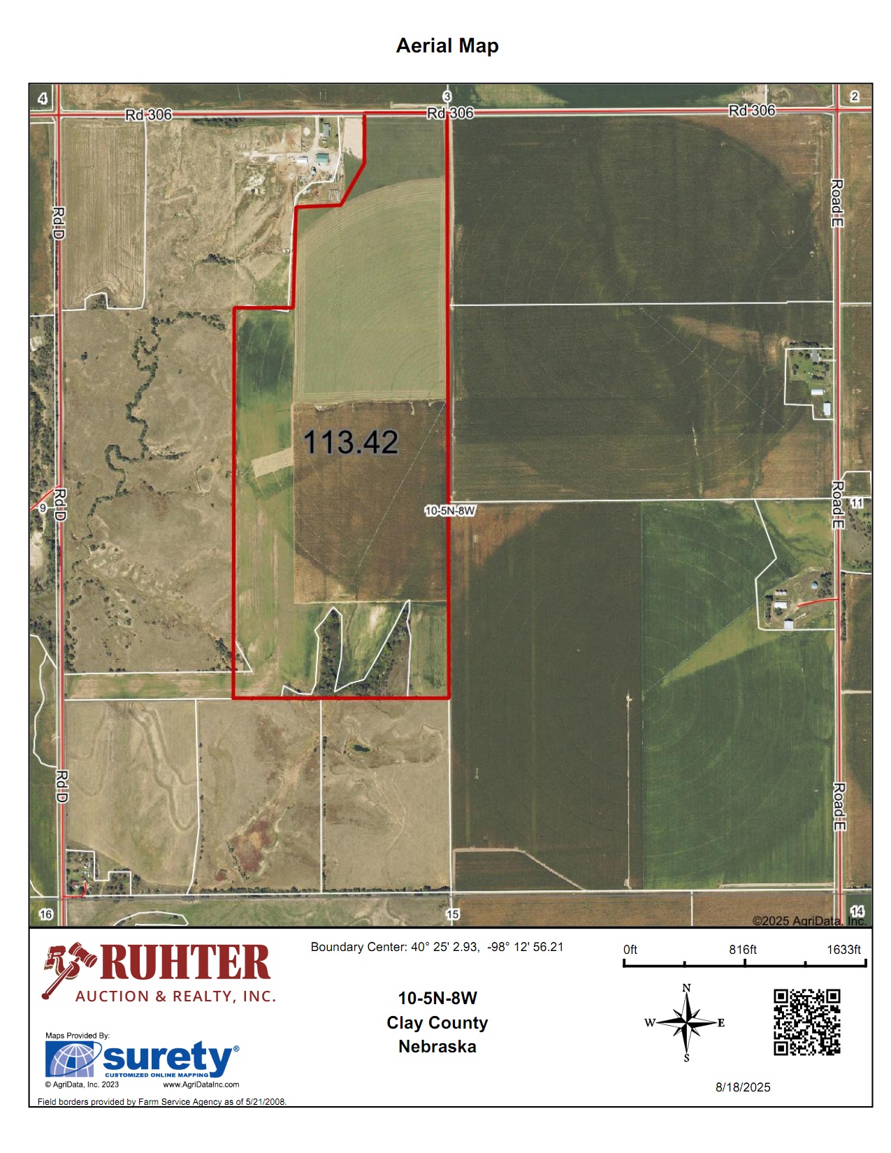 Legal Description: Part of the W ½ in Section 10-T5N-R8W Clay County, Nebraska 113.47 acres +/- determined by survey.