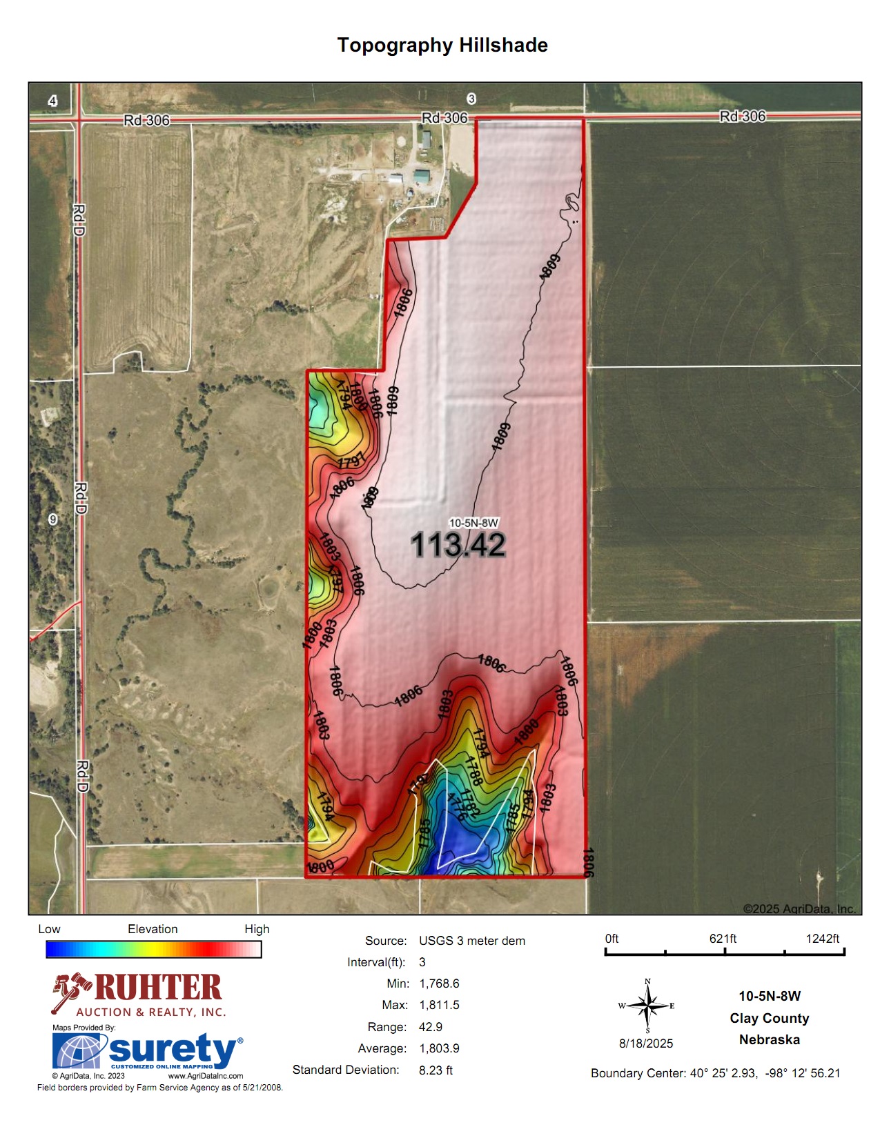 Discover a highly productive 113.47-acre pivot irrigated farm in the heart of Clay County, Nebraska, an area known for its rich soils, reliable water, and strong agricultural base. This property offers an excellent opportunity for both farm operators and land investors seeking a proven asset with long-term value.